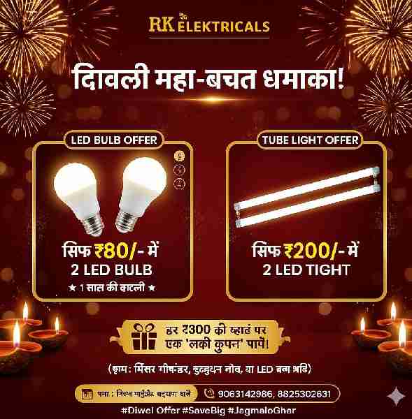 आर इलेक्ट्रिकल एंड गोलू सैनिटरीज: लकी ड्रॉ से शानदार गिफ्ट जीतने का सुनहरा मौका दीपावली का महा बचत सेल